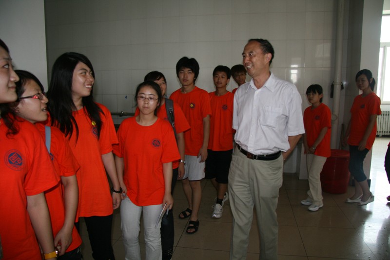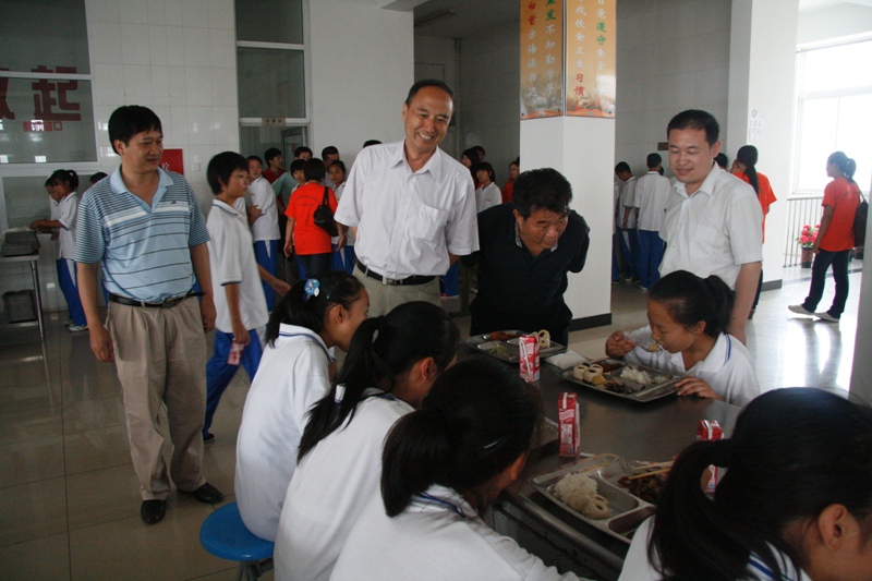 下午,慰问团马不停蹄地赶到了北洛中学,看望了外国语学院实践分团的师生。在参观了宿舍和食堂之后,卢思锋副书记向同学们了解了实践活动进展情况以及生活情况,并表达了深切的关怀,他对同学们说:“你们已经用实际行动赢得了北洛中学校方的信任,在接下来的几天中要继续发扬成绩,做好总结,注意安全。”