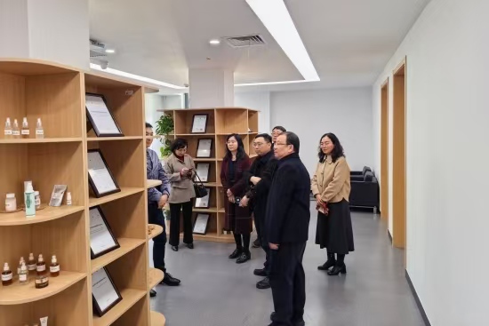 最后,邱景富一行参观了化妆品监管科学研究基地,实地查看化妆品新原料研发、高风险物质筛查、数字化监管等核心研究场景,了解基地在新工具、新方法、新标准研发与应用方面的最新进展。