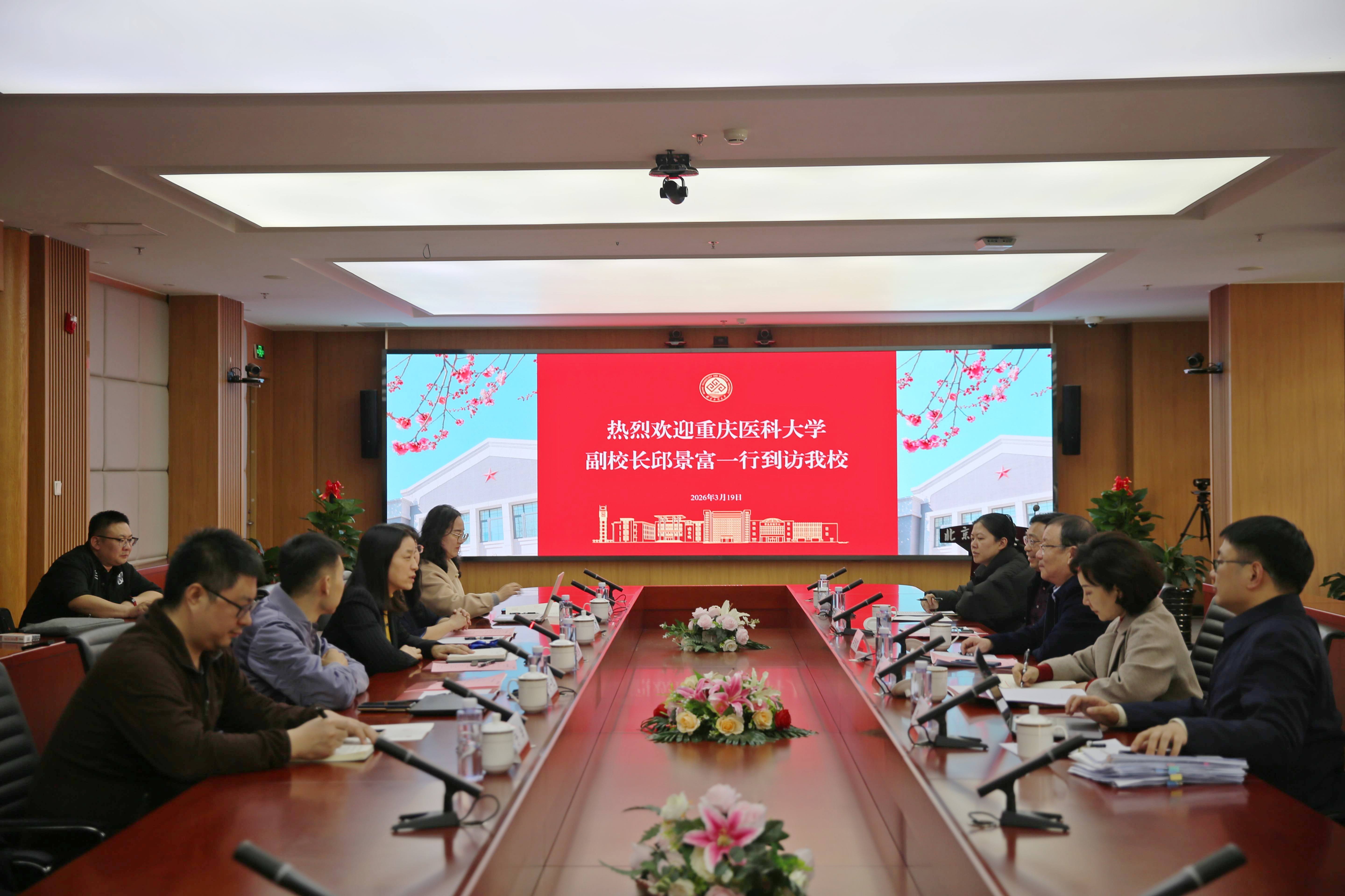 3月19日,重庆医科大学副校长邱景富一行到访我校,就国际化妆品学院校企合作、运行机制以及人才培养等工作进行调研座谈。学校副校长刘艳楠主持座谈会。重庆医科大学教务处处长朱丹、生物医学工程学院院长赵文龙、教务处副处长李响、学籍管理科科长崔渺;我校教务处处长王鲁娜、化妆品监管科学研究基地副院长何一凡、教务处副处长盖晓庆、学籍科于泽参加座谈。
