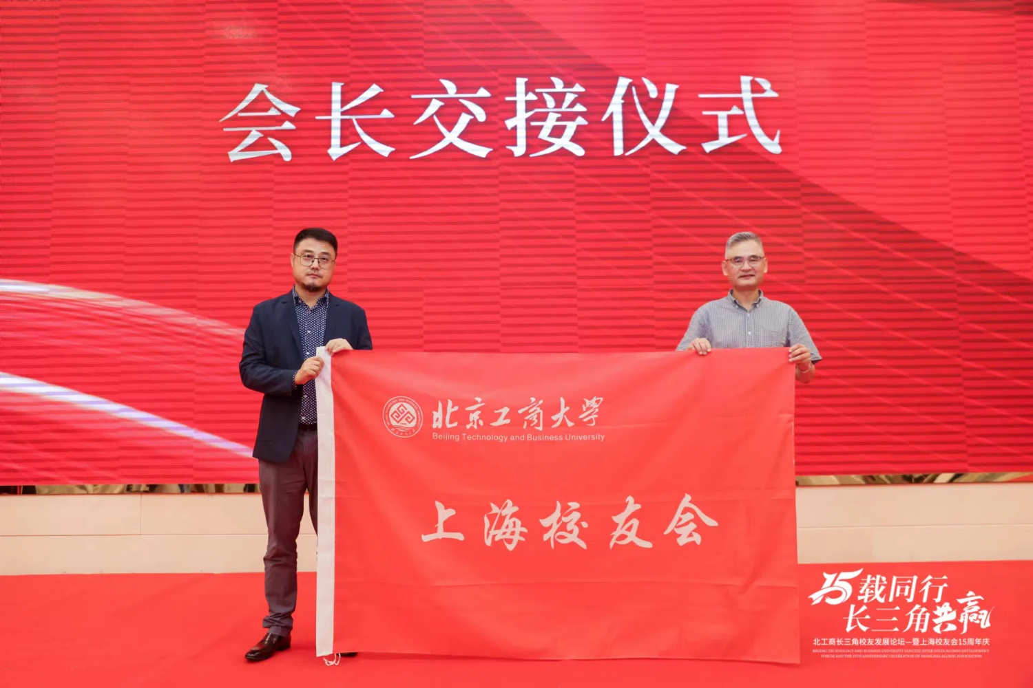上海校友联谊会会长金恩(78商经)致欢迎词。他深情回顾了上海校友联谊会成立15年来的发展、举办的各类活动和取得的宝贵经验,感谢所有热心参与、无私奉献的各位校友,感谢邵力刚勇敢担当责任,并对新一届校友联谊会的发展提出了期待。他表示,将永远做上海校友联谊会的热心者、支持者、奉献者,与大家携手共进,为母校和校友的发展做出自己的贡献!邵力刚(01贸易经济)接过会旗并作为新任上海校友联谊会会长发言。他感谢校友们的鼓励和支持,表示将认真传承和创新校友联谊会的工作,汇聚资源,团结广大校友协同联动,努力以一流的校友工作助推母校发展。他倡议长三角校友和校友企业,以北工商人的情怀、责任与担当,积极投身到长三角一体化发展中,为区域高质量发展贡献力量。