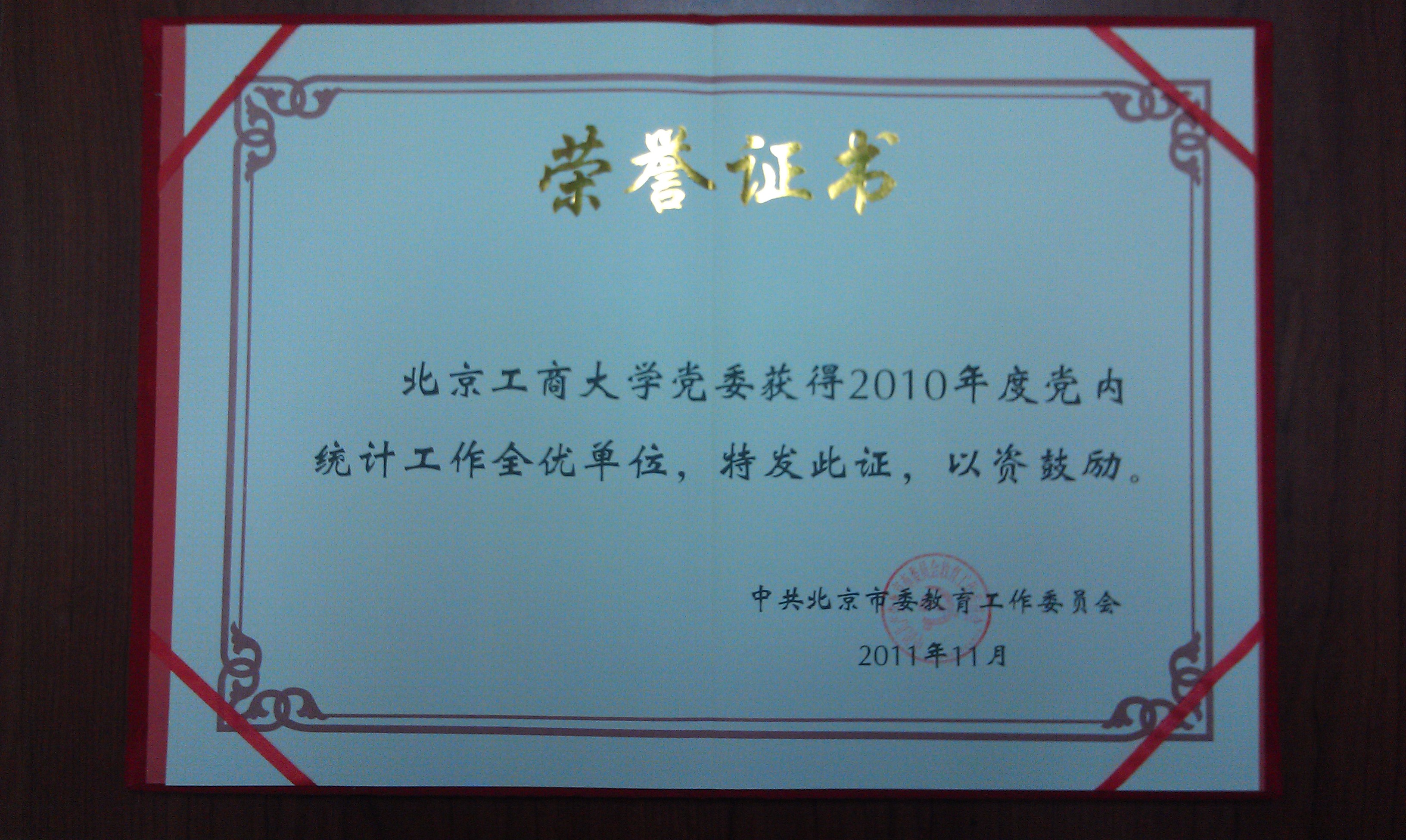 11月29日,北京市委教育工委召开北京高校年度党内统计工作会议,学校荣获“2010年度北京高校党内统计工作全优单位”称号。