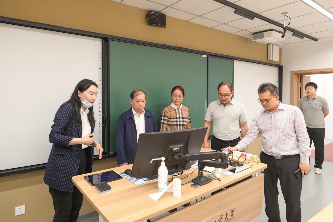 廖志坤一行先后来到文二楼通宵自习室、文二楼和文三楼智慧教室、图书馆二层数字未来中心进行实地考察,就智慧教室建设及运行、教学安排及管理、人才培养创新及实践等进行深入了解;现场观摩学校资源及管理数字化、数字赋能学校高质量发展情况。
