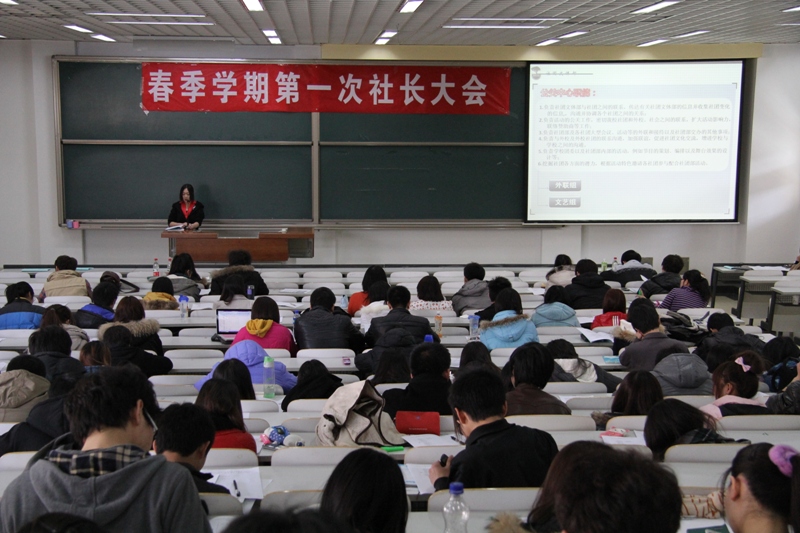 作为校园文化建设的重要载体,学生社团工作一直是我校学生工作的重要部分。为充分发挥学生社团在促进校园文化建设、活跃校园文化氛围方面的积极作用,校团委于3月14日组织召开我校各社团主要学生干部大会。