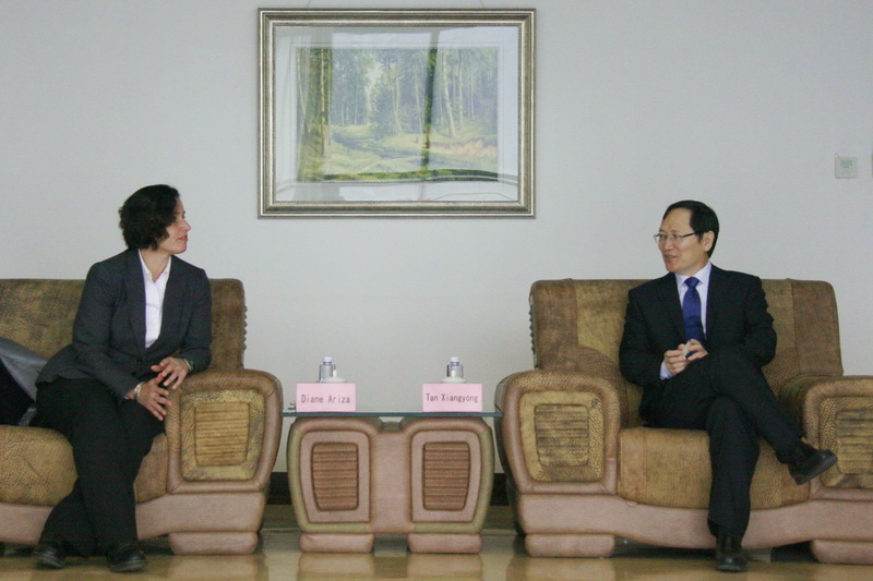 谭校长对黛安娜副校长一行访问我校表示热烈的欢迎。他向来宾介绍了我校的历史、发展历程和现状,并希望双方能够创造出更多的机会,加深和拓展两校之间的合作与交流。