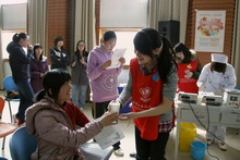 3月23日早,随着钟楼敲响八声,唤醒朝阳下的校园,以“弘扬雷锋奉献精神、光荣献血人道互助”为主题的2012年春季无偿献血活动在良乡校区学生活动中心多功能厅正式开始。 本次献血活动由学生处、校红十字会及校医院联合发起,北京市红十字会血液中心派献血车及工作人员来我校进行校园采血。来自理学院、商学院、法学院、外国语学院以及其他各院的同学们纷纷自愿前来参与了献血。 服务贴心 献血放心 学活多功能厅门外摆放了介绍献血知识的宣传板,门上悬挂写有“弘扬雷锋奉献精神光荣献血人道互助”的横幅。走进多功能厅,献血工作开展得井然有序。 前来献血的同学先在咨询台领取一张表格和由北京市献血办公室印发的献血指南,填写完个人基本信息后到体检处检查体重、血压和血型,待检验结果出来,各项指标合格后就可以献血了,最后到登记处登记并领取献血证,献血完成,整个过程不到20分钟。 后勤处早早调试好了多功能厅的空调温度,校医院的大夫也在随时关注同学献血后是否有不良反应。学校、学院为献血的同学准备了食品、糖水,市血液中心为献血者带来了面包、饮料和小纪念品。 此次献血活动的学生志愿者有近70名,汇集了校红十字会、校青年志愿者协会和自发前来志愿的同学们。数媒111、112两个班的团支书更是组织了全班同学来做志愿者。他们佩戴条幅或身着红色马甲,引导、分发表格、送糖水和面包……每个环节都有他们微笑服务的身影。 参与献血 人人光荣 本次献血活动中,同学们的参与热情很是高涨,很多同学早早就在多功能厅外等候,工作刚刚开始时,等待献血的人更是排起了长队。献血活动从8:00持续到了12:45,据统计,在这四个多小时中,共有175名献血者成功献血。 第一个献血的同学是英语112班的班长张璐。事实上,她的妈妈早上八点就要在大兴医院做良性肿瘤切除手术,她一早过来献血,献完就匆忙离开了。她坚持献血的原因不得而知,但她这第一份红色的礼物,却给听到这背后的故事的每颗心注入一股暖流。 十点十分,血液化验处旁边,工商111班的郁斌磊在焦急地等待着血液化验结果。“献血不怕,我就怕血检不过。”他说:“来献血是实现小时候的梦想,我很早就想献血了,因为未满18岁一直都不能献。我也想‘为人民服务’,献点血算是做到了一半吧。”绝大部分献血的同学都是刚满18周岁,第一次献血就成了他们成年纪念簿上最有意义的一笔纪录。 在献血等候席的角落,记者无意发现了学校云南过桥米线店的老板娘孟立娜。她告诉记者,自己前年11月也在这里献过一次血,她的弟弟也很想过来,但店里的活实在太忙了,家人都抽不出空来。当被问及为什么总惦念着献血时,她说得很简单:“对自己好,也对大家都好。” 北京市红十字会血液中心的曹庆盛大夫介绍说:“北京的医疗资源相对集中,手术量大,平时的用血就比较紧张,而每年的3月和11月是献血的淡季,血液供求就有缺口。所以每年血液中心都会与高校合作,把献血车开进校园,宣传和鼓励同学们义务献血。” 老师带头 快乐献血 校党委副书记卢思锋百忙中两次来到献血会场,在校红十字会的志愿者的引导下,参观了整个献血流程,与血液中心的工作人员交流,和在场的老师、同学愉快地谈话。 学生处的徐红京老师、王涛老师和法学院的文四英老师也加入了同学们的队伍,带头献血。徐红京老师告诉记者,自己平常一直注意锻炼,身体很好,但是明年他将超过可以献血的年龄限定,这是他最后一次能献血了。王涛老师已经献血四次了,近三年每年都参加了学校组织的献血活动,不仅自己带头献血,她还忙着组织协调其他师生献血,得到校医院老师的赞誉时,她也只说:“这是应该的。” 理学院党总支书记田宏、商学院党总支副书记褚才宽、外国语学院党总支副书记杨秀萍也来到献血现场,自始至终陪伴着同学们,一同体验奉献的快乐。每年的献血活动都得到了各个学院的大力支持。各院积极向学生普及献血知识、宣传献血政策,鼓励义务献血。理学院的田宏老师说:“我们宣传的重点是要让学生了解献血、不怕献血,做到‘献血:全知道,纯自愿’。” 献血结束后,学校及各院的领导、老师,北京市红十字会血液中心的全体医务人员和本次活动的志愿者们在学生活动中心门前合影留念。北京工商大学2012年春季无偿献血活动圆满结束。