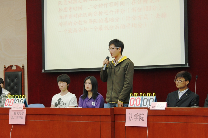 本次心理健康知识竞赛包括“同舟共济” 、“你问我答” 、“你争我抢” 、“勇者居上”四个环节。在热身赛“同舟共济”中,各院选手对主持人提出的问题进行沉着冷静地分析,展现了良好的精神风貌。随后的“你问我答”必答题和“你争我抢”抢答题环节中,各院选手凭借所掌握的丰富的心理健康知识及良好的应变能力,冷静作答,机智抢答,比分交替上升,场面十分热烈。到最后的“勇者居上”环节,比赛已经进入白热化状态,各院选手使出浑身解数,进行最后一搏。