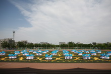 今年团体操有三个特点。一是参与人数多,往年最多只有600人,今年达到了1100人;二是运用素材多,以前只用一种道具,今年我们用了旗帜和扇子两种道具;另外,主题选材亮,北京精神贯穿于整个节目始终,并且加入阳光体育、和谐校园等更丰富的内涵;三是部门合作好,今年,教务处、后勤处、保卫处等部门和各学院通力合作,有效的解决了千人训练的管理和后勤问题。