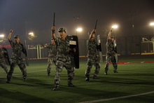 随后,承训部队的官兵为观众呈现了一场精彩绝伦的军事表演。齐步行进,纵列一线,尽展飒爽英姿;棍棒交错,激烈摔擒,彰显军人本色。队列行进刺杀操、盾牌操、匍匐操等表演激起阵阵掌声。