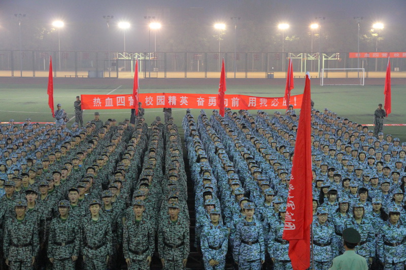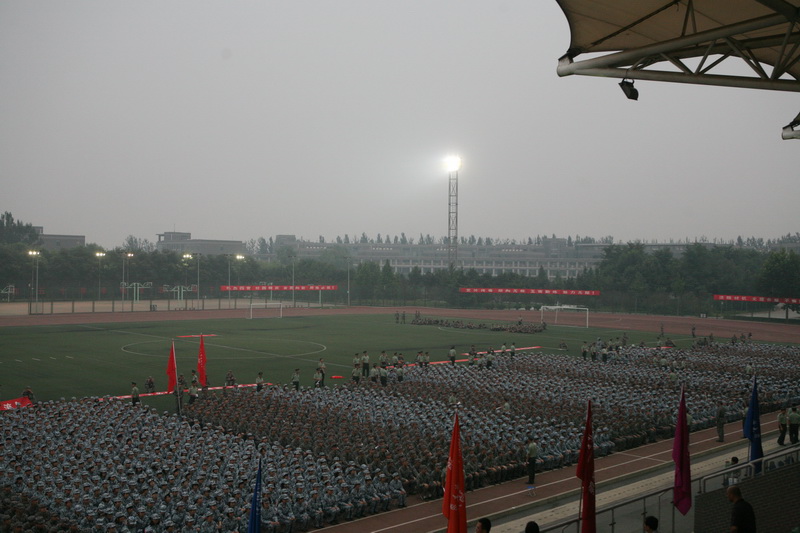 8月26日晚,2012级本科生开学典礼暨军训开训仪式在良乡校区体育场举行。校领导孙尧东、谭向勇、张德玉、孙宝国、李朝鲜、呼文亮、方德英,承训部队政委张艳阳中校,承训部队副团长、学校军训团团长王学东中校,承训部队装备工程师、学校军训团参谋长王忠伟,学校有关职能部门和军训指挥部各成员单位领导、各学院院长、承训部队教官、学校军训团、营、连负责人和2012级全体参训学生及部分学生家长参加典礼。典礼由学校党委副书记、学校军训指挥部总指挥卢思锋主持。