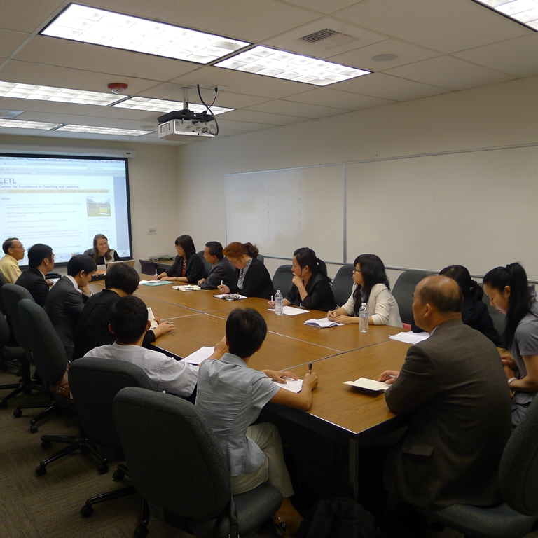 20日上午,UCDAVIS 教学卓越中心(Center for Excellence in Teaching and Learning)副主任Rosemary Capps博士为培训团做了“如何促进教师教学能力提升”的专题讲座。她指出,美国大学都设有一个为教师教学教法提供咨询与服务的专门机构,由从事教学教法研究的专家通过随堂听课、与教师一对一咨询、学生小组讨论等方式为那些课堂教学存在问题或困难的教师提供帮助,从而提高课堂教学效果,为学生提供高质量的教育服务。这体现了传统的“以教学者为中心”向现代“以学习者中心”教学理念的转变。为此,学校提供教师业务素养和创新教学能力的平台,大力支持教师的学习与发展。UCD教学卓越中心项目中积极而明快的校风、追求真理的办学理念,追求双赢、不断追求卓越的教与学的理念让培训团老师们受益匪浅,大家认真记录,踊跃提问,与Rosemary Capps博士交流探讨。