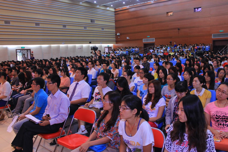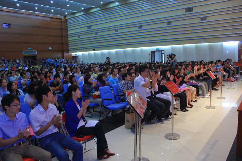 最后,谭向勇校长讲话,他首先代表学校对2012级研究生的到来表示热烈的欢迎,随后介绍了学校的发展历史、现实情况、未来规划以及2012届研究生毕业生在校期间的科研情况,他指出目前学校的各方面正在逐步地完善,学校将努力为学生提供舒适的学习生活环境,开拓国际留学的培养途径,不断提高研究生培养水平。接着,谭校长从两个方面对研究生们提出十点希望:第一方面要做好学问,包括学会发现问题,多阅读,常思考;勇于追求真理,大胆质疑,不要被专家的思想束缚住;努力扩大知识面,眼界要开阔,不要局限于本专业知识的学习;要提升基本的技能,包括逻辑、表达、写作、数学、外语等方面的能力;要小题大做,找准学位论文研究的切入点。第二方面要学会做人,做一个高尚的有社会责任感的人,这是人类共同的标准;做一个踏实的人,不要眼高手低;做一个能合作的人,善于处理好各种人际关系,学会和不同的人打交道;做一个有修养的人,幽默风趣,有生活品味;做一个身心健康的人,要有强健身体和健康心理。