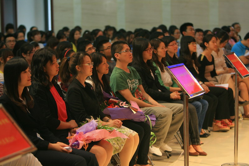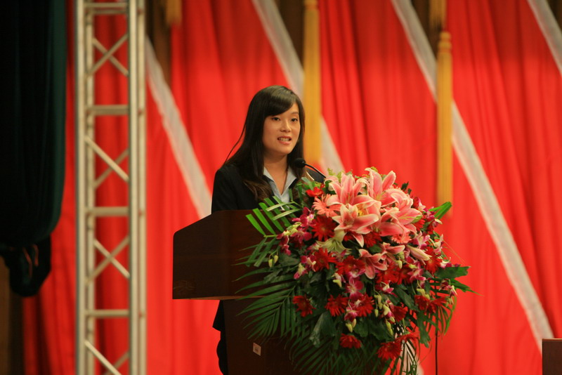 雄壮的国歌声拉开了开学典礼的序幕,商学院崔学刚教授代表研究生导师发言,他向所有2012级新同学的到来表示由衷的欢迎,并提出了三点期望:德育为先、责任在肩,学以致用、知行统一,导学互动、求新探异。最后他希望新同学们能够学有所成。