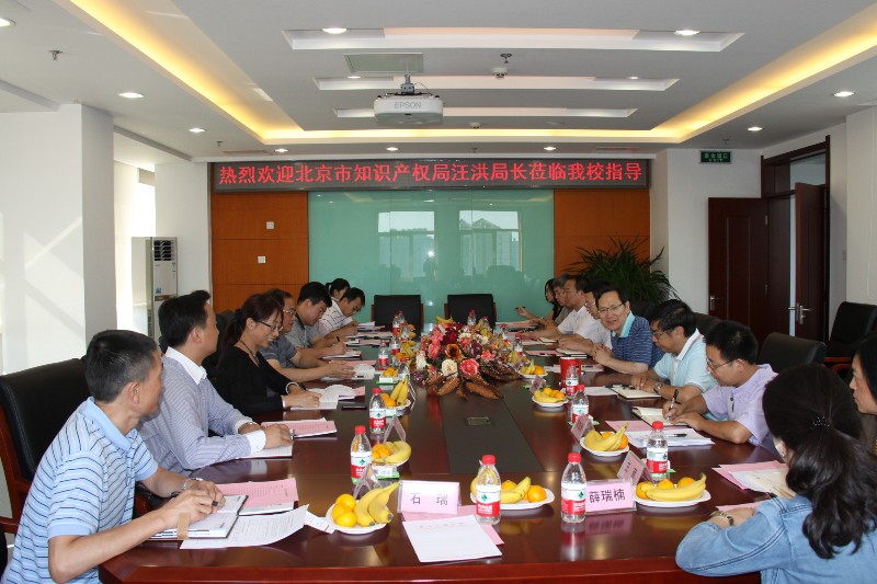 9月17日,北京市知识产权局局长汪洪、副局长王淑贤一行8人来我校调研知识产权情况,办公室主任徐海龙、协调处处长张志豹、信息中心主任黄建军及相关工作人员陪同调研。谭向勇校长代表学校对汪洪局长一行表示欢迎。