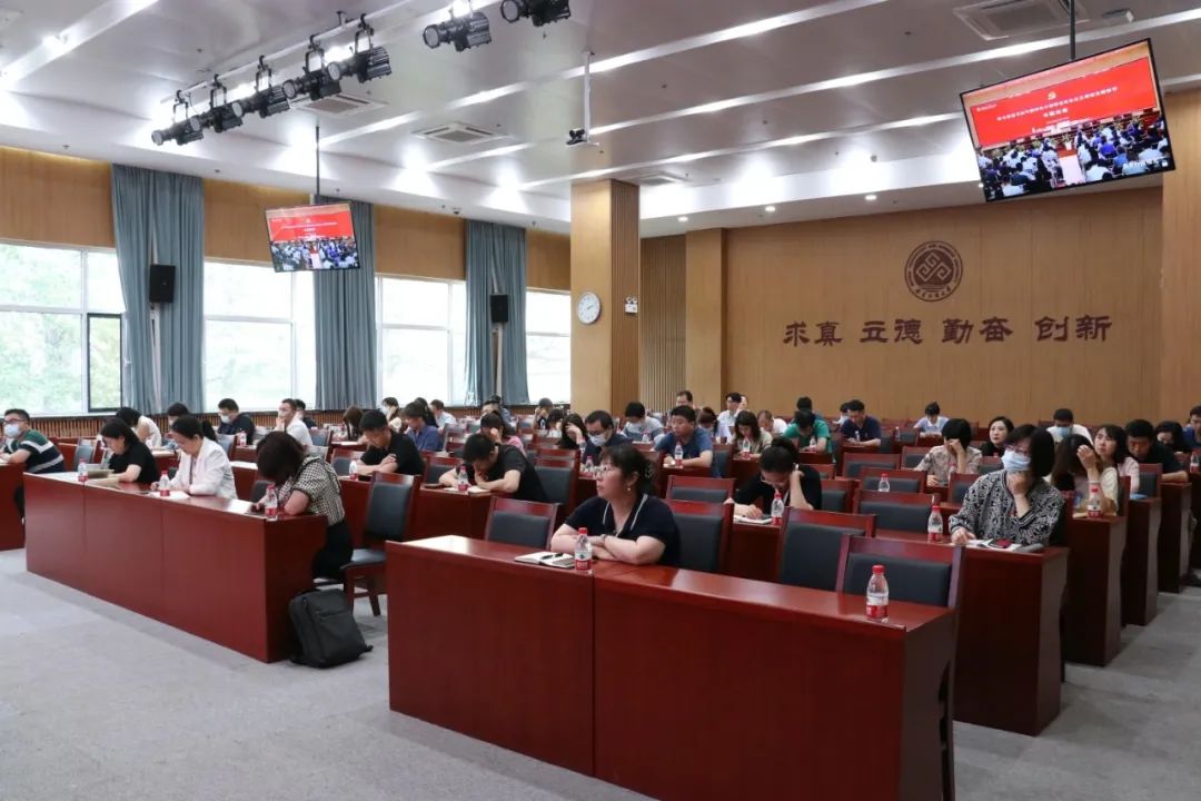 按照学校党委关于学习贯彻习近平新时代中国特色社会主义思想主题教育的部署安排,5月16日,学校党委书记黄先开以《学深悟透增本领 矢志一流建新功》为题,带头讲授主题教育专题党课。市委第十七巡回指导组组长杨公鼎、联络员冯建春到会指导。全体校领导、中层干部、专职组织员、师生党支部书记、机关管理干部等分别在两校区会场线上线下参加党课。党课由党委副书记李中奇主持。