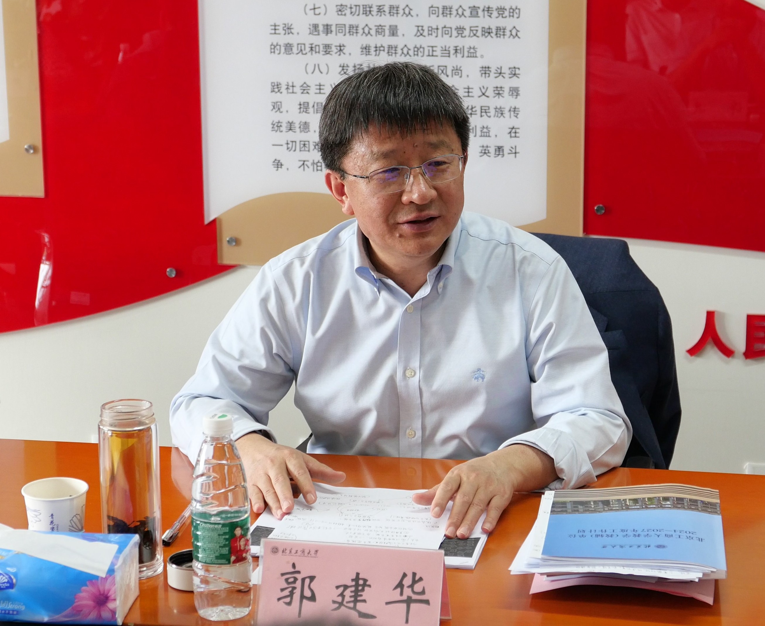 郭建华对学院在人才培养、学科建设、科学研究等方面取得的成绩给予肯定,他表示,当前学校正在加快 创建“双一流”学科,学院要凝心聚力、统一思想,紧紧围绕学校发展目标,以智能科学与技术学科建设为核心,做好顶层设计,找准目标定位,明确实施路径,发挥学院学科专业特色,助力学校事业发展。就学院未来发展思路,郭建华提出五方面具体要求:一是瞄准申博目标 ,打造学科高地。要对标对标申报要求,厘清差距,进一步凝练学科方向和特色,争取博士点的顺利获批。二是“智能”聚力、“交叉”赋能,助力学校“双一流”学科创建。要抢抓人工智能发展的重大机遇,顺应人工智能赋能学科交叉融合的发展趋势,以智能科学与技术为核心,坚持融合转型、数据赋能,将学科转型升级和融合交叉的成果转化为社会经济各领域数字化、智能化转型的强大动力,不断提升学院、学科的影响力。三是全力推动计算机科学与技术学科进入ESI前1%。要全面系统分析学科发展现状,跟踪分析学科的发展动态,落实落地细化推进措施。四是要坚持以特色谋发展。要立足国家和首都经济社会发展需求,结合行业产业发展前进,打造特色学科专业,开展有组织的科研,建强高水平师资队伍,以特色引领学院高质量发展。五是落实好“疏解整治促提升”工作任务。要制定切实可行的搬迁方案,尽快完善楼宇改造方案,努力为师生创造更好的教学科研环境,为学院发展奠定坚实的基础。