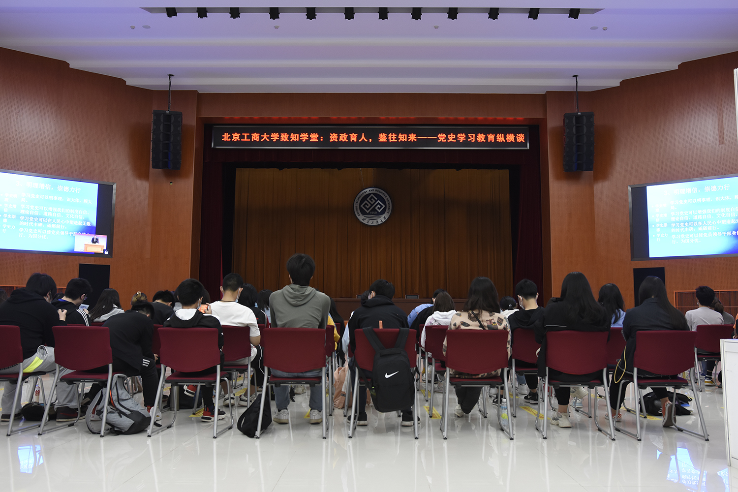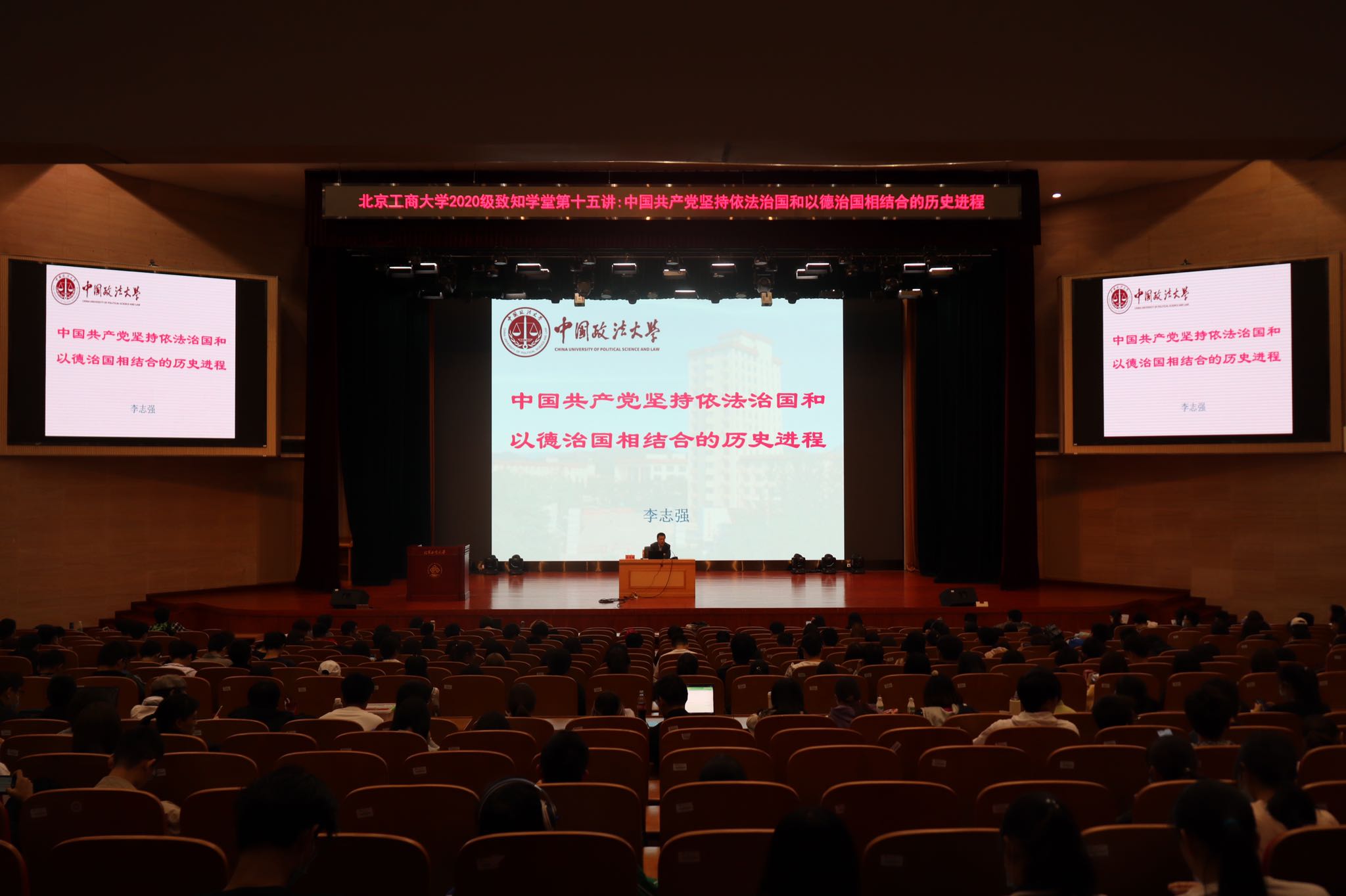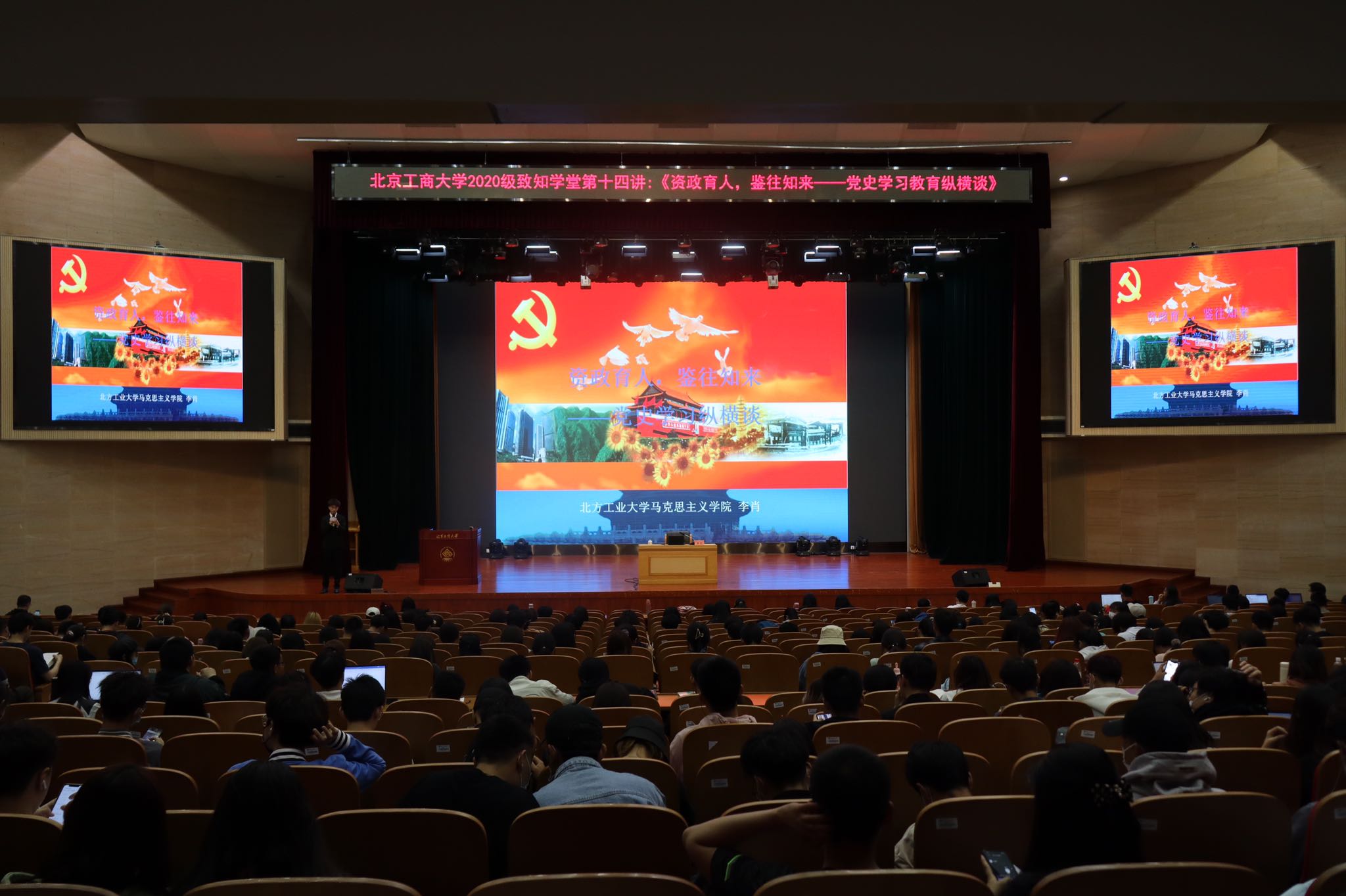 4月27日、29日,致知学堂第二讲、第三讲在良乡主校区开讲。北方工业大学马克思主义学院中国近现代史纲要教研室主任、人民网“慕课法学院”顾问李肖,中国政法大学教授、中央马克思主义理论研究和建设工程专家李志强分别以《资政育人,鉴往知来——党史学习教育纵横谈》和《中国共产党坚持依法治国和以德治国相结合的历史进程》为主题进行讲座。