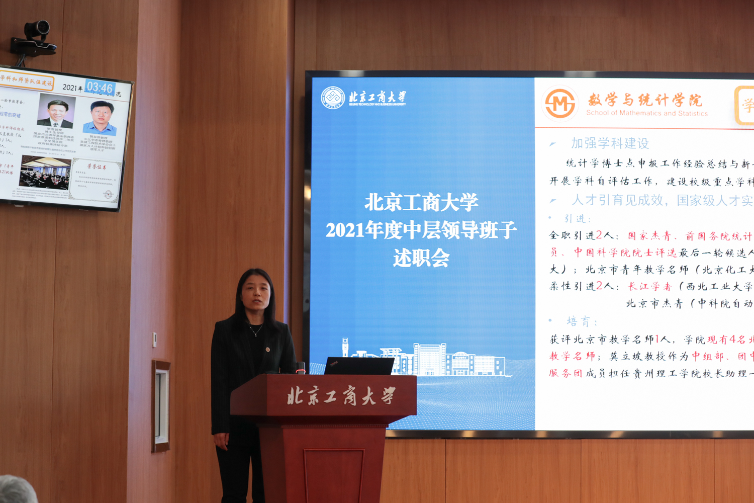 根据学校中层领导班子、中层干部考核工作安排,由各二级单位行政负责人依次代表领导班子对年度工作进行述职。43家二级单位负责人根据本单位自身职责定位,围绕学校党政工作要点、十大重点工作任务等内容,涵盖党的建设、班子自身建设、党风廉政及作风建设等方面情况,以文稿演示形式汇报了2021年工作完成情况、存在问题,展示了取得的工作业绩,并对2022年重点工作进行展望。