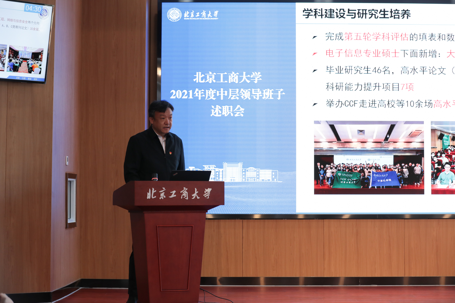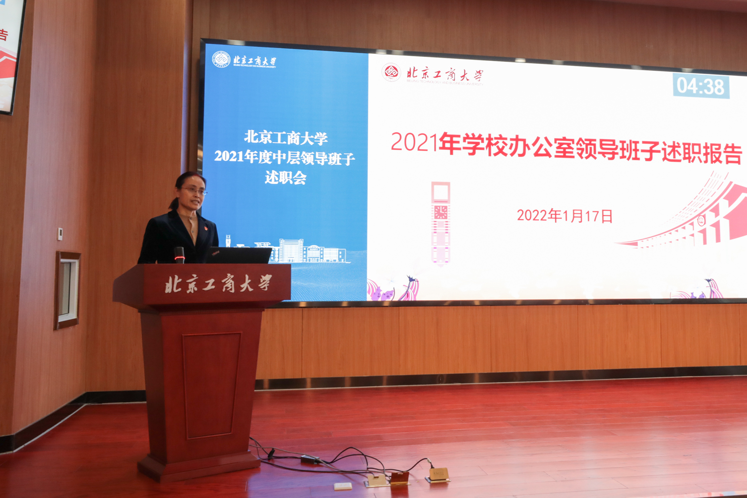 1月17日,学校在阜成路校区召开2021年度中层领导班子述职会。校领导黄先开、孙宝国、王伟、李中奇、欧阳媛、郑文红、徐丹丹、刘敏华、左敏出席会议。全体党政管理部门、群团组织、教辅单位负责人和教学单位行政负责人现场参会。会议由学校党委副书记王伟主持。