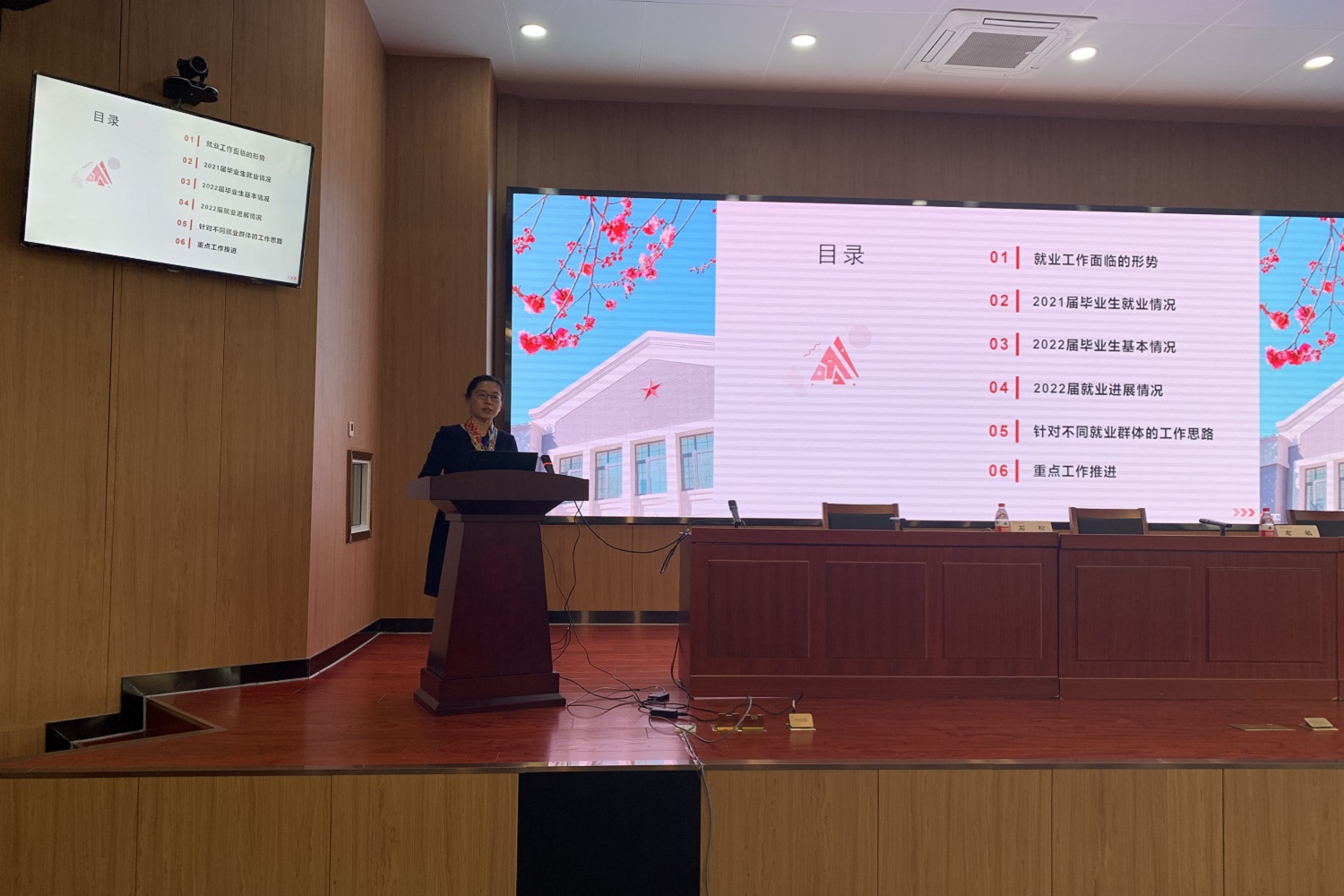 招生就业处处长杨林介绍了召开此次会议的背景和目的,并对各学院落实有关会议精神提出建议。招生就业处副处长石松从就业工作面临形势、2021届毕业生就业情况、2022届毕业生基本情况及就业进展情况、针对不同就业群体的工作思路和重点工作推进六个方面对就业工作进行部署。本科招生负责人卜晓媛从本科招生基本情况、存在问题、推进工作和工作日程四个方面对本科招生工作进行介绍。