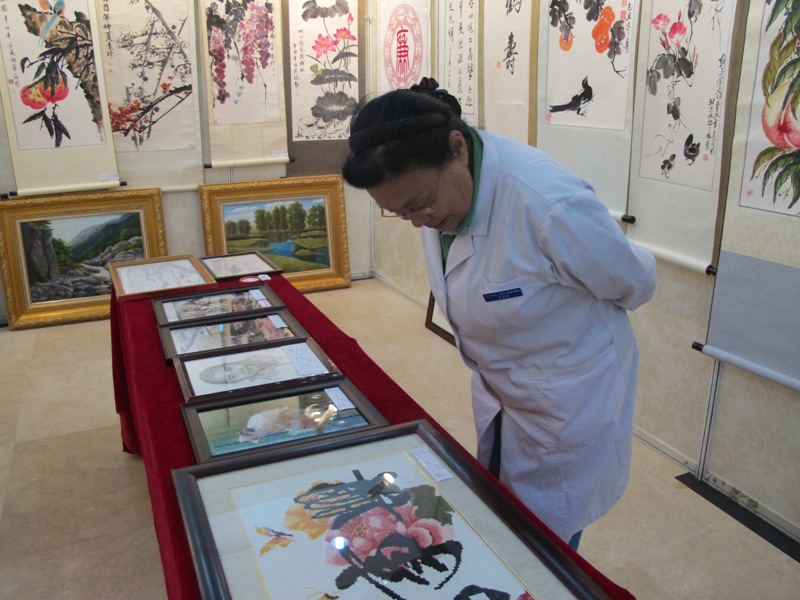 近两米的书法作品“龙舞神州”大气磅礴,十字绣作品《家和万事兴》雅致优美,摄影作品《节日的天安门》用影像将披上节日盛装的天安门定格为永恒……9月28日,“喜迎国庆、祝福工商”书法绘画摄影艺术展在阜成路校区图书馆盛大开展。