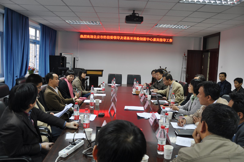 10月15日,应方德英副校长邀请,北京市经济和信息化委员会万新恒副主任、科技标准处林绍福处长、电子信息产业处杨爱民处长、诺基亚体验创新中心傅蕾总经理等一行六人到计算机与信息工程学院参观交流,并就学校与诺基亚体验创新项目中的科技合作意向进行沟通。