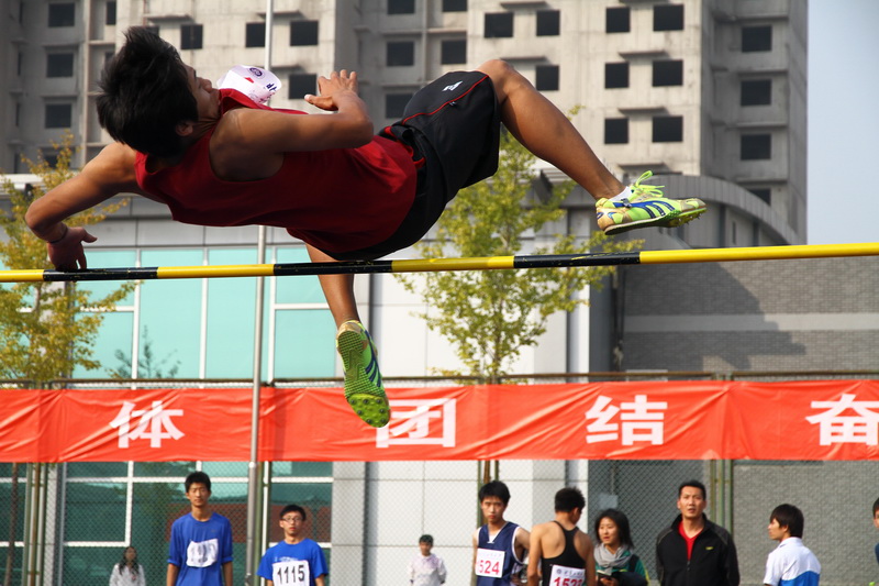 比赛刚开始,跳高选手们都非常轻松的跃过标志杆。随着比赛进行,每一次高度的叠加,剩余的选手越来越少。在比赛场中,化学124班刘安定每次跳完都会鼓励下一个选手。与他一起进入前三名的还有工商127班的孙国人,他是比赛中的一匹黑马,一直零失误的动作引发现场阵阵的惊呼声和掌声。