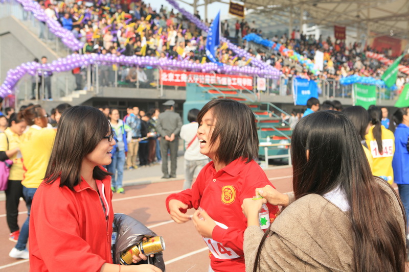 为保证运动会的圆满举行,各学院都有志愿者在赛场上为运动员服务。来自工商127班杨艳润同学说:“进入北京工商大学这个大家庭,我们看到的是大家积极乐观、斗志昂扬的精神风貌,体会到的是集体作战的欢乐,虽然没有直接参与比赛,但为此也没有觉得遗憾,因为这就是‘志愿’二字的含义。”