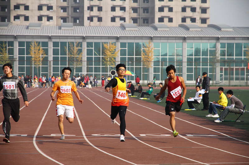 百米赛跑一直是诞生飞人之战,选手如猎豹般的矫捷、飞鸟般的轻盈使赛事极富观赏性。飞人不是一夜炼成的,赛场上翱翔的雄鹰亦是经历无数次磨练。艺传学院的金泽同学于小组赛中拔得头筹,他遥遥领先的背后是平时在足球场上挥汗如雨的练习。“足球中积极的跑动锻炼了我的爆发力,增强了我的体力。我百米跑的秘诀是功在平时。”金泽同学大方地分享他的经验。