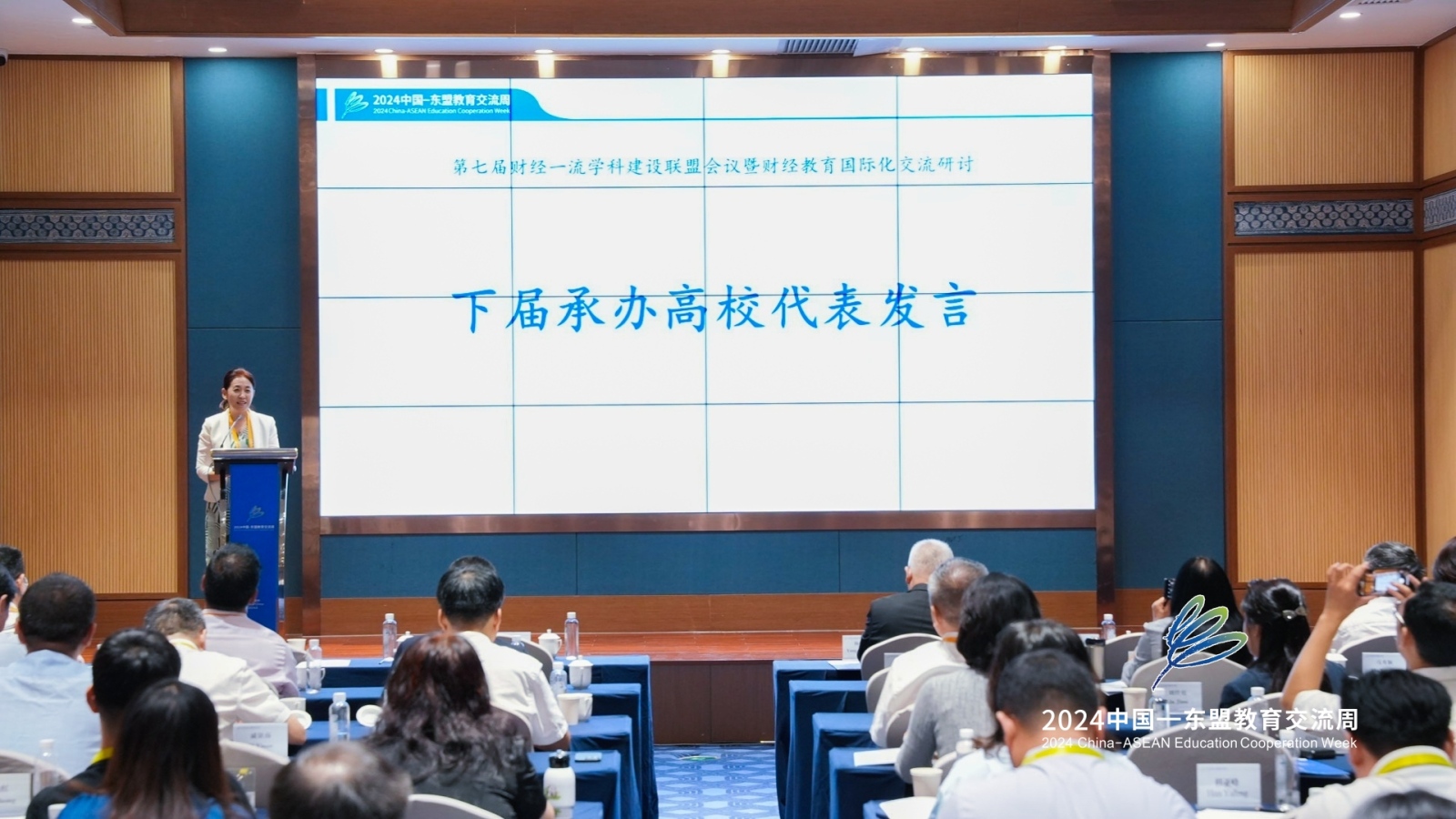 8月20日,由中国高等教育学会高等财经教育分会财经一流学科建设联盟主办,贵州财经大学承办的中国-东盟教育交流周第七届财经一流学科建设联盟会议暨财经教育国际化交流研讨在贵州中国-东盟教育交流周永久会址召开,我校党委常委、副校长徐丹丹教授应邀出席会议并作主旨报告。