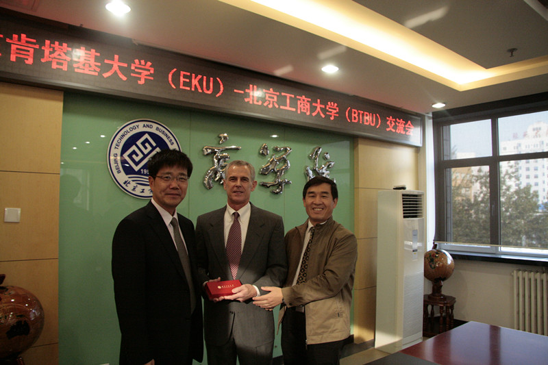 国际交流处处长何明珂、商学院院长王国顺主持了欢迎仪式。双方就学生交流和教师互访等方面进行了探讨,并达成了进一步合作的意向。东肯塔基大学Fenton教授对我校组织安排的各项活动表示感谢,非常期待能够再次来访,并热情欢迎我校师生到东肯塔基大学进行访问。最后,东肯塔基大学(EKU)师生在我院教师与学生的陪同下参观了我校图书馆以及经济管理实验室。