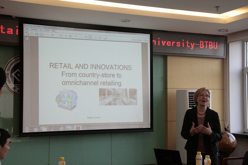瑞典兰德大学的教授介绍了他们学校和学院的优势及特点,尤其是零售业管理的主要研究领域。她希望双方能展开合作,加强零售管理方面的交流和沟通。