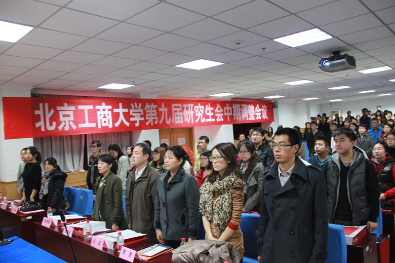 会议在庄严的国歌声中开幕。吕良在会上致辞。他充分肯定了过去一年研究生会在科技、文化、体育、社会实践和志愿服务等方面取得的成绩,希望研会继续加强内部组织建设,不断增进与学院之间的交流活动,以科研学术活动为主题,通过“传、帮、带”的形式,与学校阜成路校区的本科生、留学生一起,扩大活动覆盖面和影响范围。