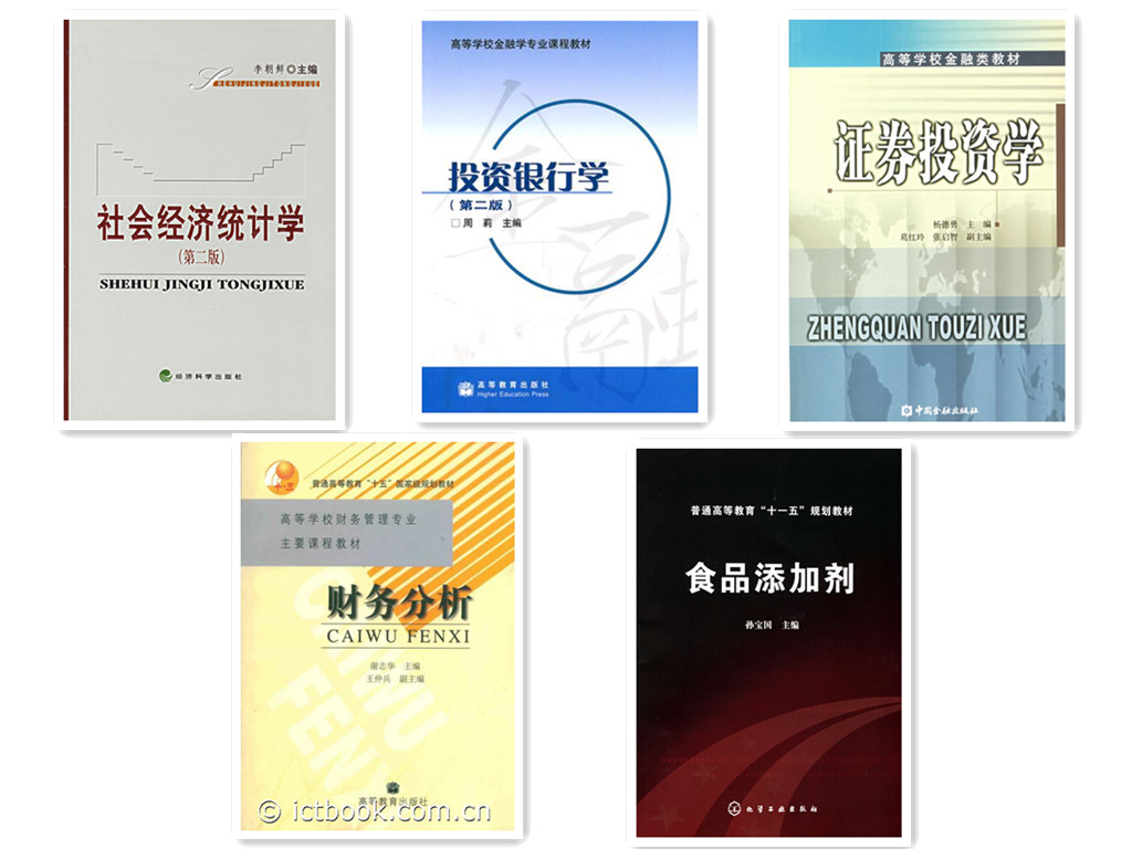 根据《教育部关于印发第一批“十二五”普通高等教育本科国家级规划教材书目的通知》,我校五本教材入选第一批“十二五”普通高等教育本科国家级规划教材,分别是:《社会经济统计学(第二版)》(李朝鲜,经济科学出版社)、《投资银行学(第二版)》(周莉,高等教育出版社)、《证券投资学》(杨德勇,中国金融出版社)、《财务分析(第二版)》(谢志华,高等教育出版社)、《食品添加剂》(孙宝国,化学工业出版社)。