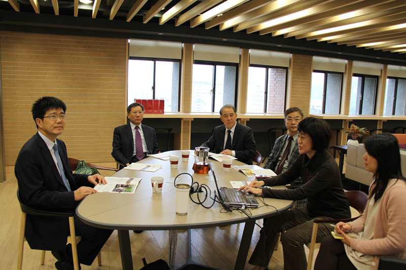 考察团与实践大学校长、副校长交流后合影 考察团在听取台湾大学管理学院负责人的介绍