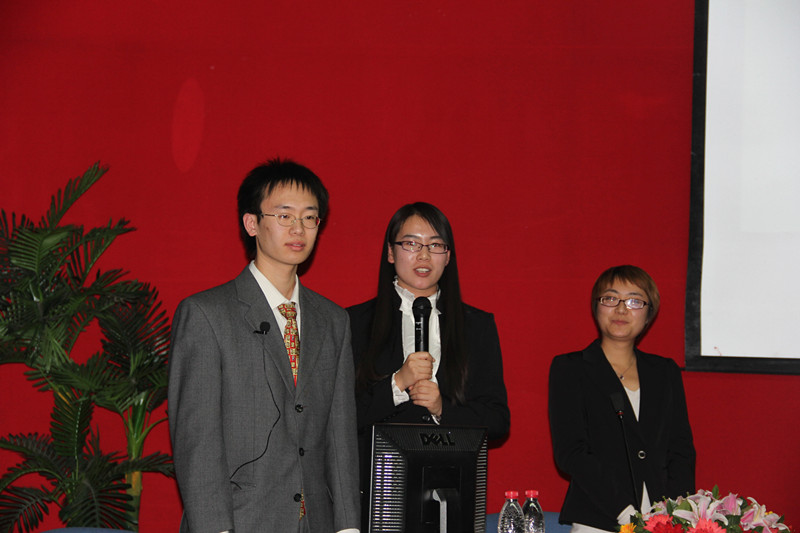 答辩当天,注会102班的三名代表身着正装,以班歌开始了班级展示。接下来,他们以视频的形式向大家展示了班级建设的具体情况。视频从思想建设、学习争先、特色制度、工作贡献、缤纷生活、璀璨成果、寄语展望等七方面全面展现了班级建设情况,并重点介绍了本班在思想、党团建设中的优秀成果,以及紧跟十八大脚步,学习十八大精神和参与“首都百万师生微党课”的情况。视频结束之后,现场专家和评委对班级展示进行提问,针对注会专业的特点以及班级互帮互助的学风建设提出了问题。