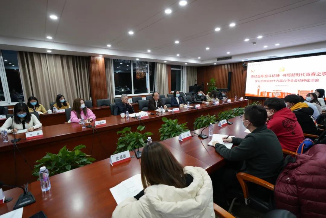 报告会后,学校召开“赓续百年奋斗精神,书写新时代青春之歌”学习贯彻党的十九届六中全会精神座谈宣讲,黄先开书记与28名本科生、研究生学生党员进行了互动交流。市社科院(市委讲师团)理论宣讲处处长高亚雄、市委讲师团联络员张婉出席座谈会,座谈会由党委副书记李中奇主持。