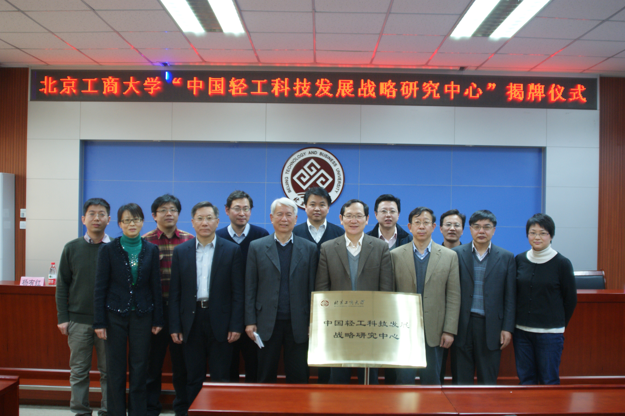 北京工商大学“中国轻工科技发展战略研究中心”以中国工程院轻工科技发展促进会为基础,以我校食品学院为基地。战略研究中心主任由陈克复院士担任,成员包括轻工领域多位院士及我校食品学院部分教授等在内的科技专家,并聘请了中国轻工业联合会及所管行业协会领导、专家及相关院校知名专家组成专家咨询委员会。该中心旨在集聚我国轻工领域最重要的科技专家,对我国轻工科技发展,特别是重要行业的科技发展方向、方式、目标等发展战略问题,通过考察、调研、分析研究提出思路,对轻工各领域产业升级的关键技术、共性技术,特别是创新性技术的推广和应用提出建议;为各级主管部门及重点企业在制定规划中发挥顾问作用,在我国轻工行业发展中发挥重要作用。