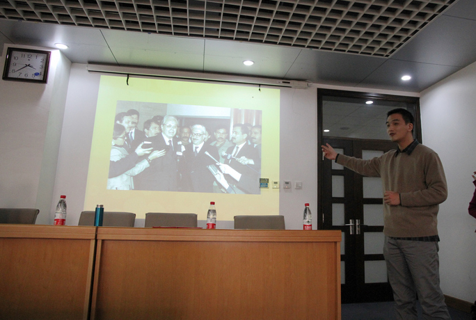 宣传部副部长刘晶对2012年度学生记者团的主要工作进行了回顾与总结,她充分肯定了过去的一年记者团成员们在文字、摄影、摄像、广播四个方面取得的成果,从新生入学、军训、体育艺术文化节、市场营销大赛、元旦晚会等活动的报道,再到【青春榜样】等栏目的建设,各项专题新闻与深入报道,学校每次重大活动都不乏小记者辛勤工作的身影。她希望小记者们团结拼搏、再接再厉,在新的一年里取得更大的成绩。