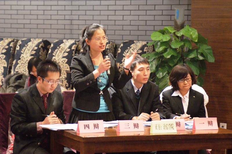 大会别出心裁,以辩论赛开场,辩论赛的辩题为“班级对综合测评中学生活动附加分能否自主裁量”,辩论双方为计信学院辅导员对阵经济学院辅导员。双方队员机智应变,你来我往,唇枪舌剑,高潮迭起,赢得了现场观众阵阵掌声。辩论赛既体现出辅导员在日常学生管理工作中对出现的问题敏锐的洞察力,同时也展示了辅导员良好的个人素质和能力,为推动综合测评相关制度的进一步完善提出了新的挑战和思路。最终,经济学院技高一筹,获得了辩论赛的胜利。