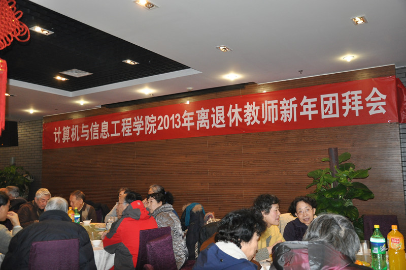 1月11日,计算机与信息工程学院2013年离退休老教师新春团拜会在阜成路校区举行。六十余位离退休教师欢聚一堂,庆贺新年。党委书记孙尧东、副校长张耘、方德英到场慰问。