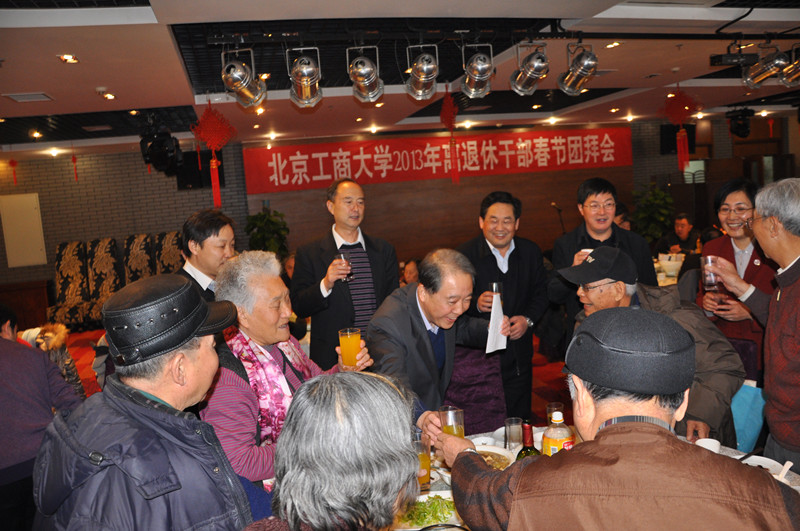 1月16日,学校举办2013年离退休干部春节团拜会,离休干部和局职老领导50余人欢聚一堂,共迎新春佳节。校领导孙尧东、谭向勇、卢思峰、谢志华、李朝鲜、张耘、方德英出席团拜会。团拜会由党委副书记张德玉主持。