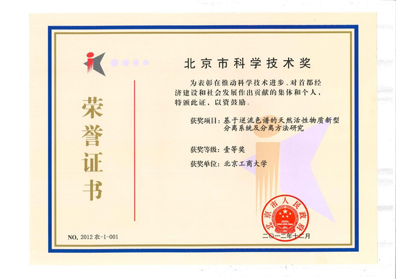 近日,北京市委、市政府隆重召开科学技术奖励大会,表彰获得2012年度北京市科学技术奖的科技创新成果,市委、市政府主要领导出席大会。我校曹学丽教授主持完成的《基于逆流色谱的天然活性物质新型分离系统及分离方法研究》研究项目荣获2012年度北京市科学技术奖一等奖。