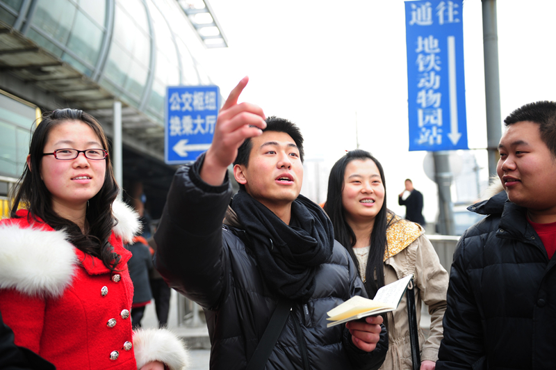 一到周末,只要不赶上期末考试,这位就读于北京工商大学的大男孩就会出现在动物园交通枢纽处,为异乡人指点迷津。在韩昱琦看来,北京这些年的发展实在太快,新增的公交线路如爬山虎一样将城市编织得密不透风,这些密如蛛网的公交线路,数以百计的沿线站名、换乘站点对于老北京人来说看着都头疼……
