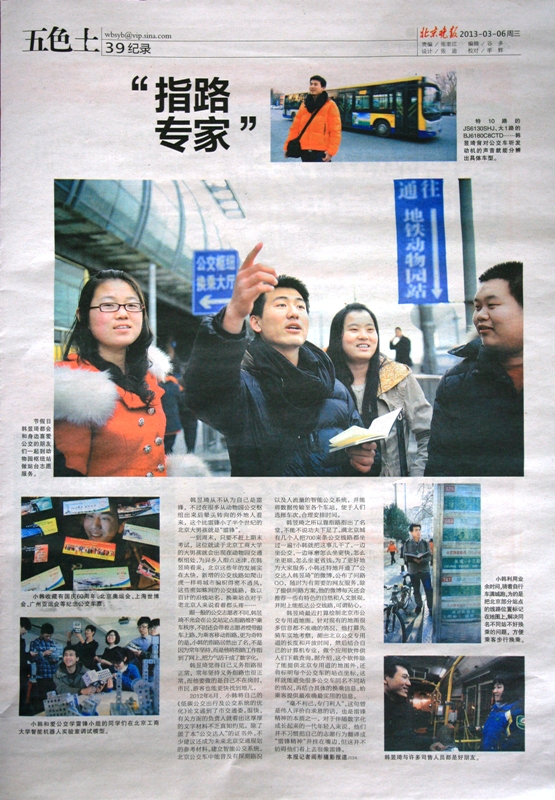 韩昱琦是我校计信学院12级软件专业的学生,一个90后北京大男孩儿。他不仅熟知北京所有公交车的车型,还熟知北京的所有公交线路。每个周六周日,只要有时间,韩昱琦就会去做志愿者,除了在车上为大家服务,他还经常去北京客流最多的地点之一——动物园公交枢纽的公交车站台上为乘客答疑、指路。在城市拥堵成大难题的今天,他经过近一年的考察与研究,向北京市交通委提交了《低碳公交出行及公交系统的优化》的论文。他被北京市交通委授予了“公交达人”的称号。