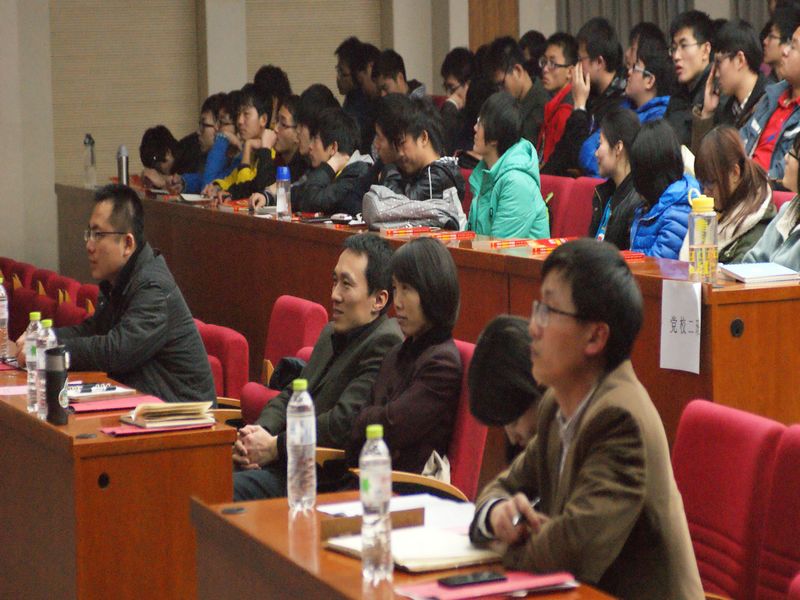 卢思锋副书记为学员们讲授了主题为“深刻认识和积极践行社会主义核心价值观”的第一堂党课。卢书记从“幸福感”引申出社会主义核心价值观的内涵,并从其内在逻辑和践行原则进行了深入剖析,结合学校和学生实际,倡导学生培养爱国、敬业、诚信、友善的核心价值观。在讲课过程中,他通过一些图片资料、统计数据、实际案例及网络漫画等形式进行讲解,在活跃气氛的同时,也让学员们从中产生共鸣,受到教育,提高认识。