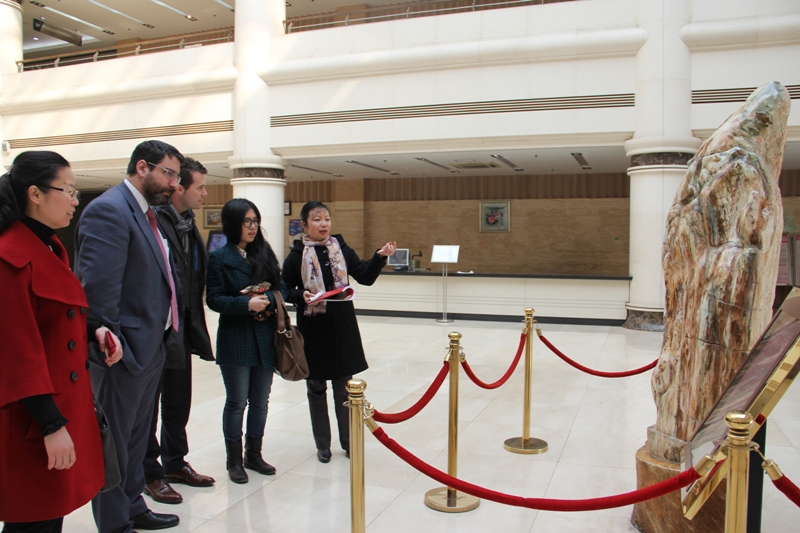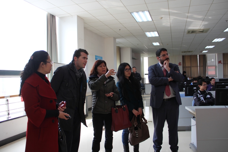 会谈前,代表团一行在国际处刘影副处长的陪同下前往良乡校区进行参观。代表团参观了我校校史馆、图书馆、文二楼综控室、和文科实践中心。图书馆负责人对我校图书馆做了详细的介绍,文科实践中心相关负责人向访问团展示了证券、期货、外汇业务实习大厅的相关设施。代表团来到何明珂处长的物流专业课课堂听课、与学生进行交流,并做了简短的演讲。代表团对我校良乡校区优美的校园环境、设施表示赞赏。