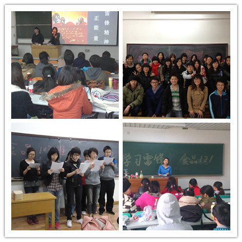 此外,食品学院为把“学雷锋”活动延展到每个同学的身边,在3月份集中开展了“学习雷锋同志,弘扬雷锋精神”主题班会活动。各班围绕“学习雷锋同志,弘扬雷锋精神”,开展了形式多样的主题活动。有的班级举办了“团支部学习雷锋座谈会”,畅谈了各自对雷锋精神的理解。有的学生认为雷锋精神一直我们身边,“感动中国人物”中19年献血6万毫升的郭明义,靠卖羊肉串资助贫困学生的阿里木等等,都是雷锋精神在新时代的具体体现,是大家学习的榜样。有的学生则表达了自己对雷锋同志的敬仰和钦佩之情。大家还谈到了班级内部的好人好事,学生们纷纷表示要向他们学习,使更多的“学雷锋标兵”闪闪发光;有的团支部围绕此次活动主题,开展了征文或知识竞赛等活动。通过开展形式各样的活动,加强了学生们对雷锋精神的理解,使大家对雷锋同志的生平事迹得到了更深的认识。