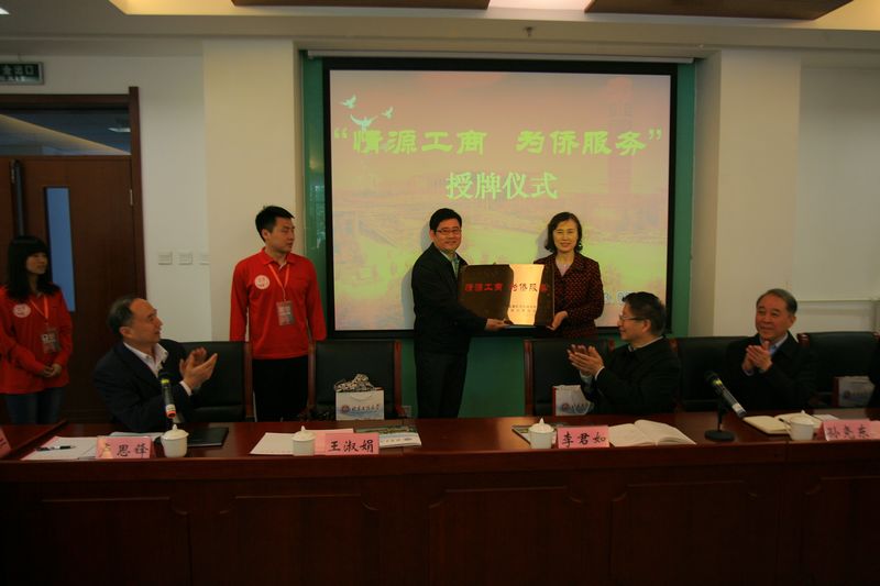 报告会结束后,举行了“情源工商、为侨服务”活动授牌仪式和座谈会。“情缘工商、为侨服务”志愿服务项目于2011年1月启动,至今已两年有余。活动的开展始终得到了中直机关侨联李君如主席、中直机关工委群工部领导和校党委卢思锋副书记的关心指导。经济学院党总支副书记马韬光代表学院接受了中直机关侨联常务副主席王淑娟赠送的“情源工商、为侨服务”活动牌匾。