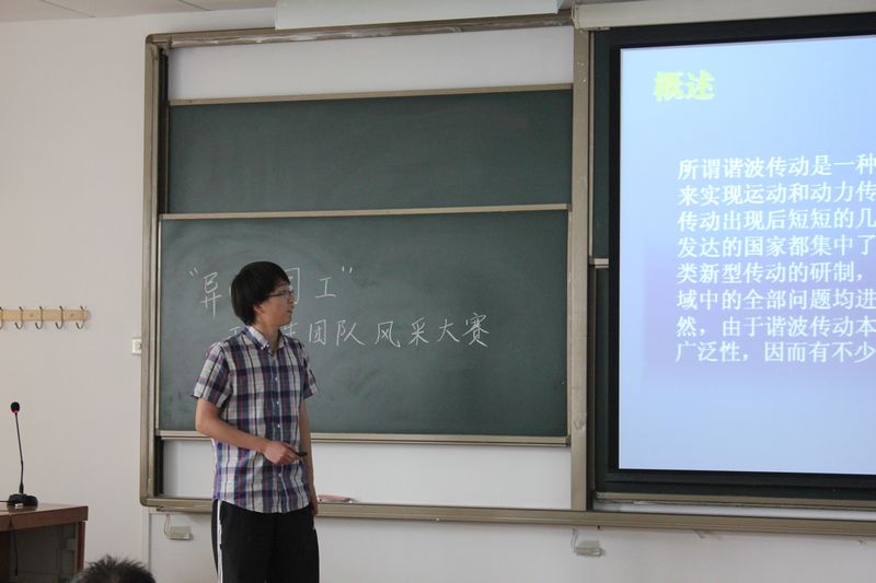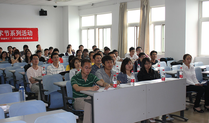 运动控制实验室作为第一个团队,通过情景剧的方式,生动幽默的讲解了用Inventor三维造型软件制作的一朵玫瑰花、一把刻有“心上人”的改锥和一架送给未来儿子的直升飞机,他们通过自主研发的全自动胚芽米机的视频,让大家直观的将专业知识与生活联系起来;机械工程实验室展现了实验室团结协作的良好风貌,把喷雾干燥技术的专业讲解与奶粉、茶叶中的茶多酚结合,让专业介绍走进生活;材料加工工程团队通过展示生活中常见的塑料标识,普及、归纳了生活中塑料用品的选用方法及使用误区;先进传动技术与机器人学实验室借助动感ppt,以震撼的视觉效果展示了团队风采,并将实验室中谐波齿轮的相关研究及改进与仿真蜻蜓结合;电子控制实验室团队结合实验室的生活情趣及团队文化,展示了该实验室承担的全国大学生“飞思卡尔”杯智能汽车竞赛情况及相关研究;有限元分析团队是第六个参赛团队,他们在东北二人转曲调的伴唱下讲解了全体实验室的成员及专业研究中各种静强度分析、模态分析、疲劳分析、振动分析等。