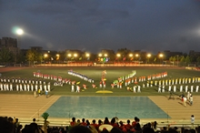 党委书记孙尧东致开幕辞。他衷心感谢参加开幕式表演的北京体育大学师生、武警七支队官兵和我校的师生员工们。他指出,刚刚过去的近2个月,学校举办了以“阳光 活力”为主题的体育文化节,共有5000名师生员工参与到9类项目的比赛和一系列活动中。今晚即将举办的运动会开幕式,既是体育文化节的圆满落幕,也是2013年运动会的盛大开幕。在广大师生员工的积极参与下,学校已经形成了每年举办两次较大型运动会的传统,目的就是要激发师生员工参加体育锻炼的热情,推动奋发向上的校园文化建设。他代表学校党委衷心希望全校师生员工,始终追求真理和学术成就,坚守高尚的道德情操,坚持健康的生活方式,养成锻炼体魄、愉悦身心的良好习惯,为实现中华民族的复兴梦、强校梦和个人的幸福梦而不懈奋斗。